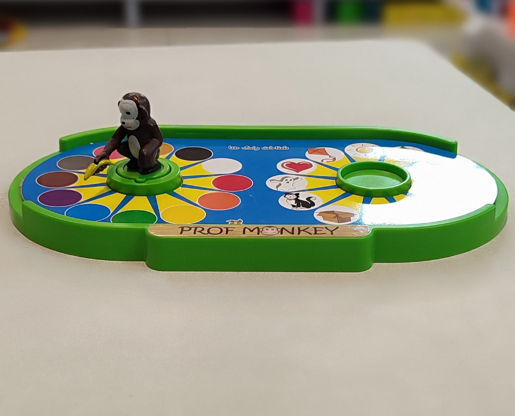 یک عدد میمون, چند کارت با تصاویر مختلف, یک صفحه پلاستیکی برای قرار دادن میمون و کارتها.