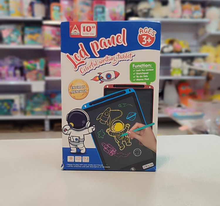 تبلت جادویی تبلت دارای یک صفحه نمایش بزرگ 10 اینچی چند رنگ است که کاملا لمسی بوده و کودک شما میتواند با استفاده از قلم مخصوص تبلت روی صفحه چند رنگ آن نقاشی و طراحی های زیبا بکشد. همچنین با رشد کودک شما میتوانید از این تبلت برای آموزش حروف فارسی و انگلیسی ، اعداد و … به کودک استفاده کنید
